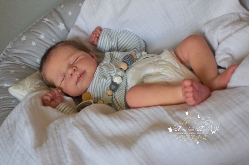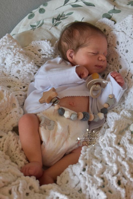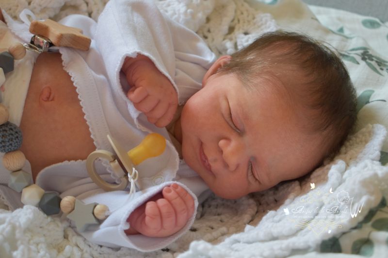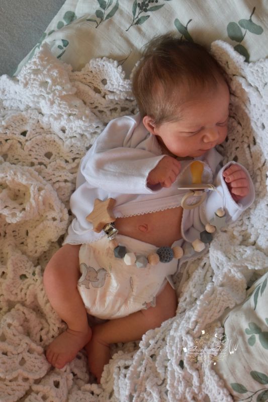 2023 wurde Gretel von mir ein weiteres Mal rebornt. Sie bekam dunkelblonde Haare und kann wunderbar als Junge oder Mädchen gekleidet werden.Quinlynn by Laura Lee Eagles